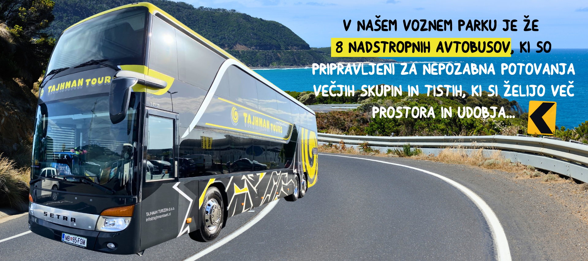 Za največjo mero varnosti in udobja pri vaših potovanjih poskrbimo z avtobusi visokega ranga blagovne znamke Setra in Mercedes-Benz. Za manjše skupine pa so na voljo tudi minibusi in kombiji.