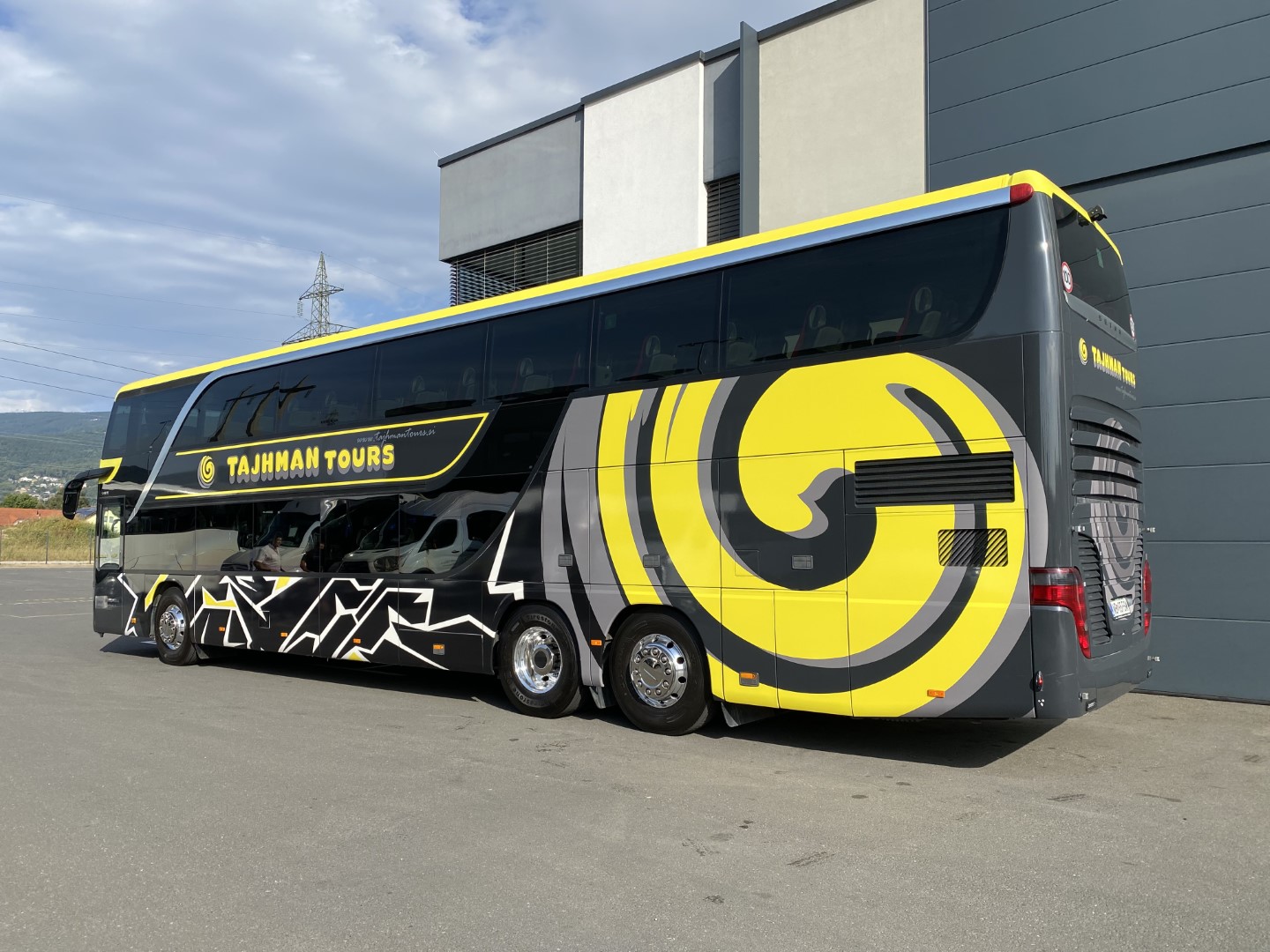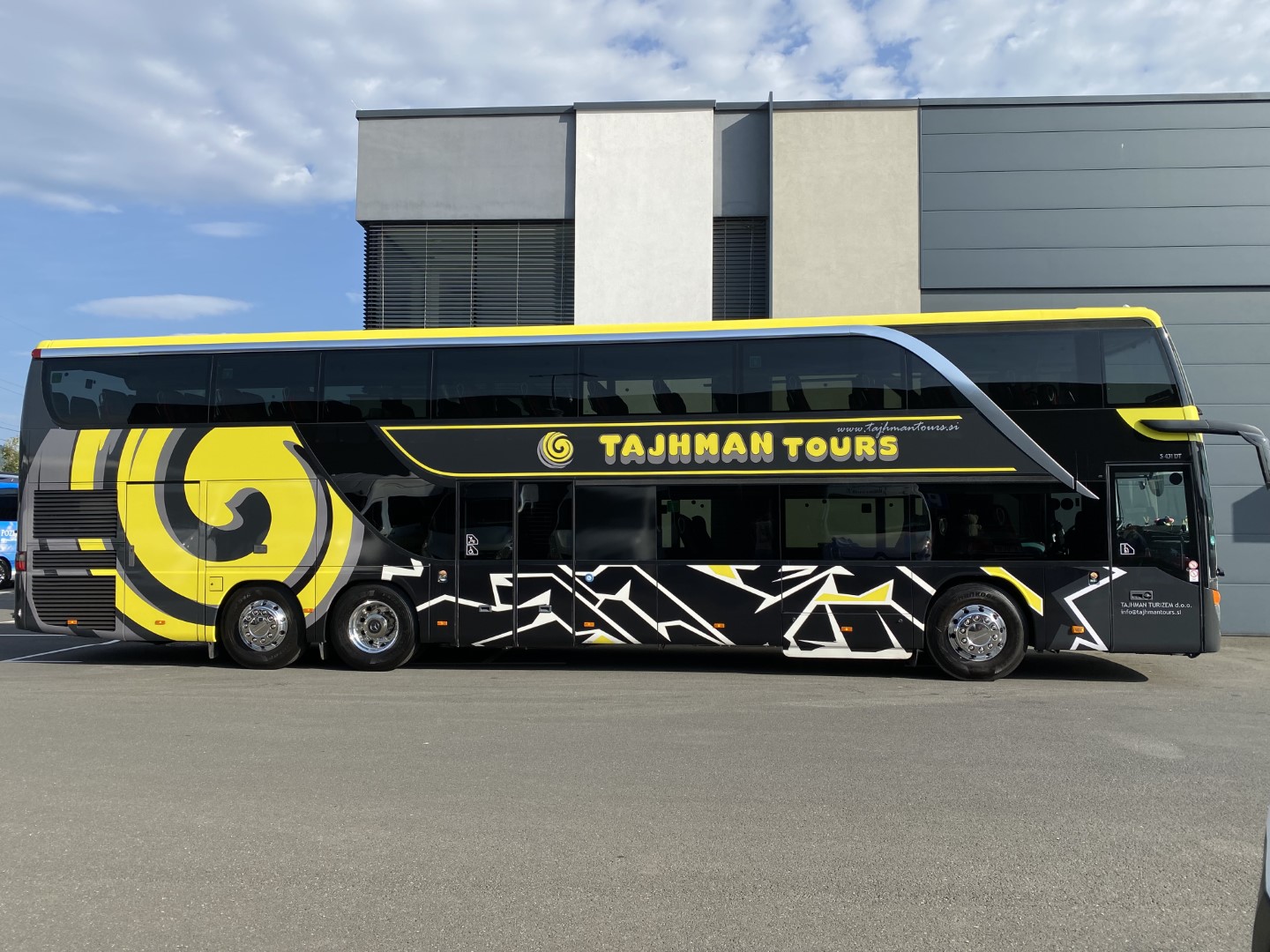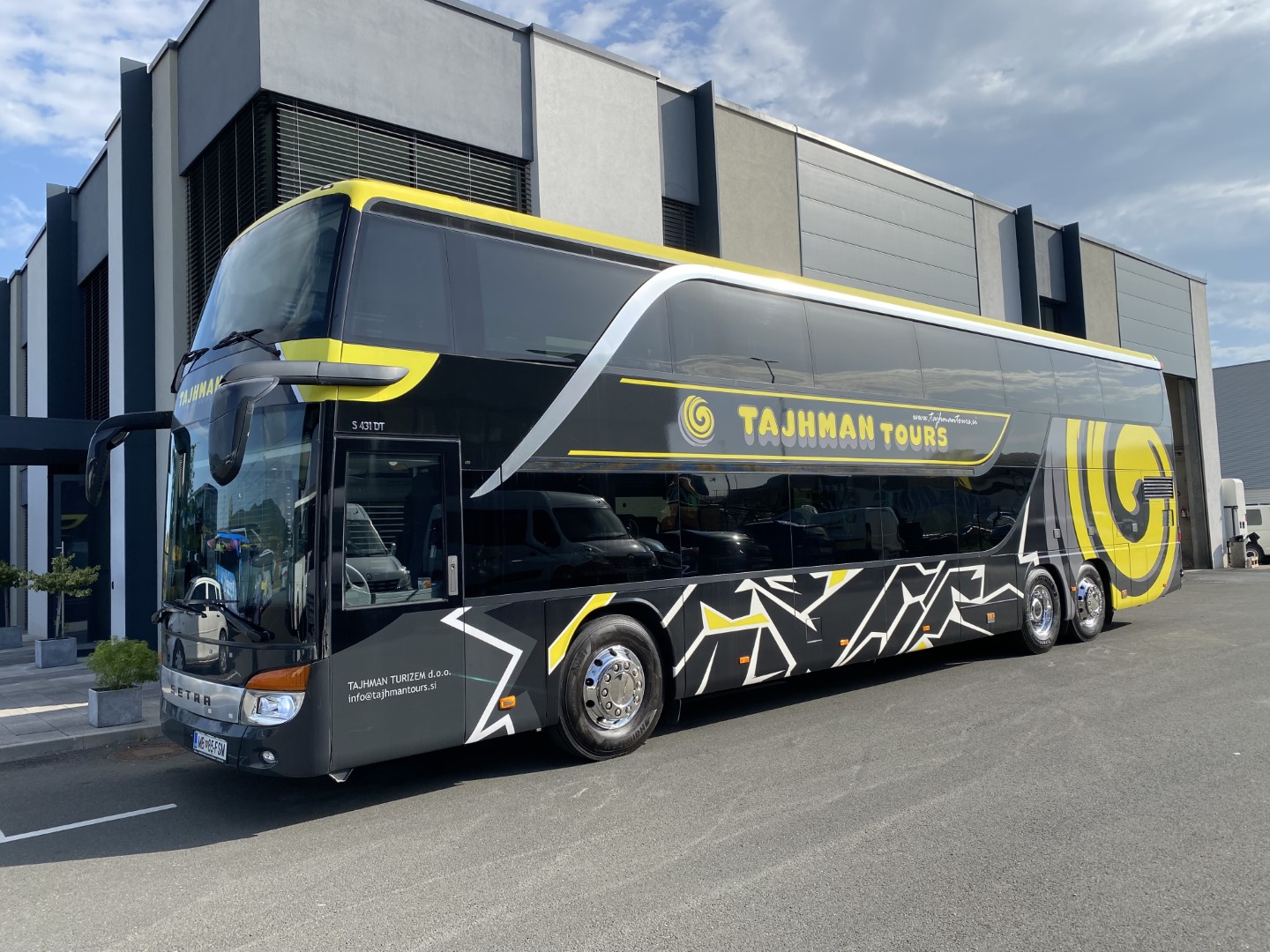 Udobni potniški sedeži Setra z varnostnim pasom z dvemi točkami, naslon za glavo iz usnja, obroba sedeža iz usnja, mrežice za časopis na potniških sedežih, preklopne mizice na potniških sedežih, dvojna zasteklitev stranskih stekel, dodatno zatemnjena stranska stekla, hladilnik zadaj (uporaba po dogovoru z voznikom), USB avdio sistem, aktivna podpora varnosti.