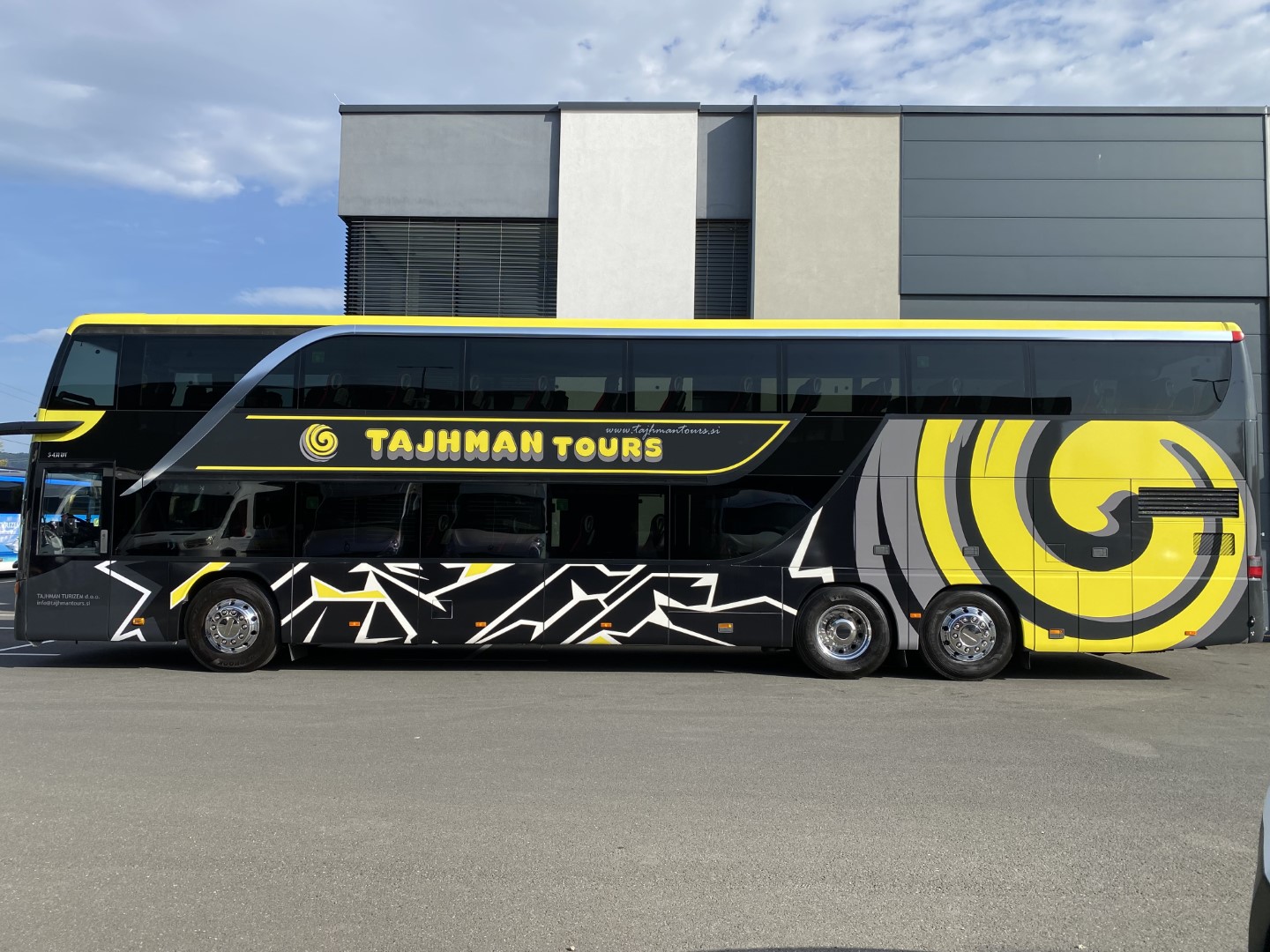 82 sedežev: 80 + (1 vodnik) + 1 (voznik)